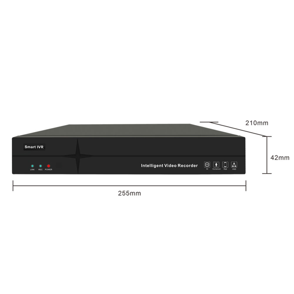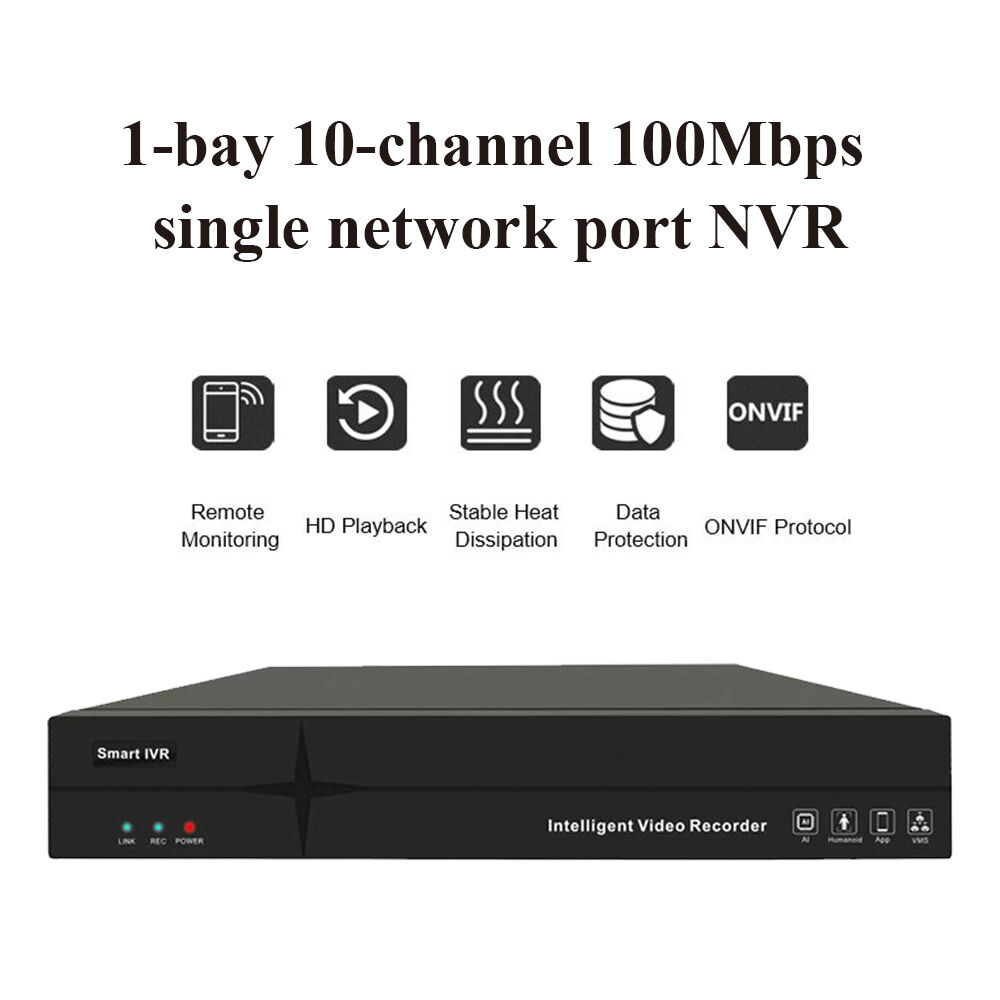 The 10-channel intelligent hard disk recorder supports 10-channel 4K camera inputs and outputs, featuring smart functions including boundary detection, vehicle reverse driving, personnel absence, lingering, area intrusion, and illegal parking. It provides voice alarm functionality in multiple modes and allows modification of the light pattern in the propri- etary IPC protocol. The system supports both online and USB-based upgrades for our camer- as, with a maximum capacity of 16TB hard disk, 1 HDMI and 1 VGA output interface, 2 USB ports, and mobile monitoring capability.